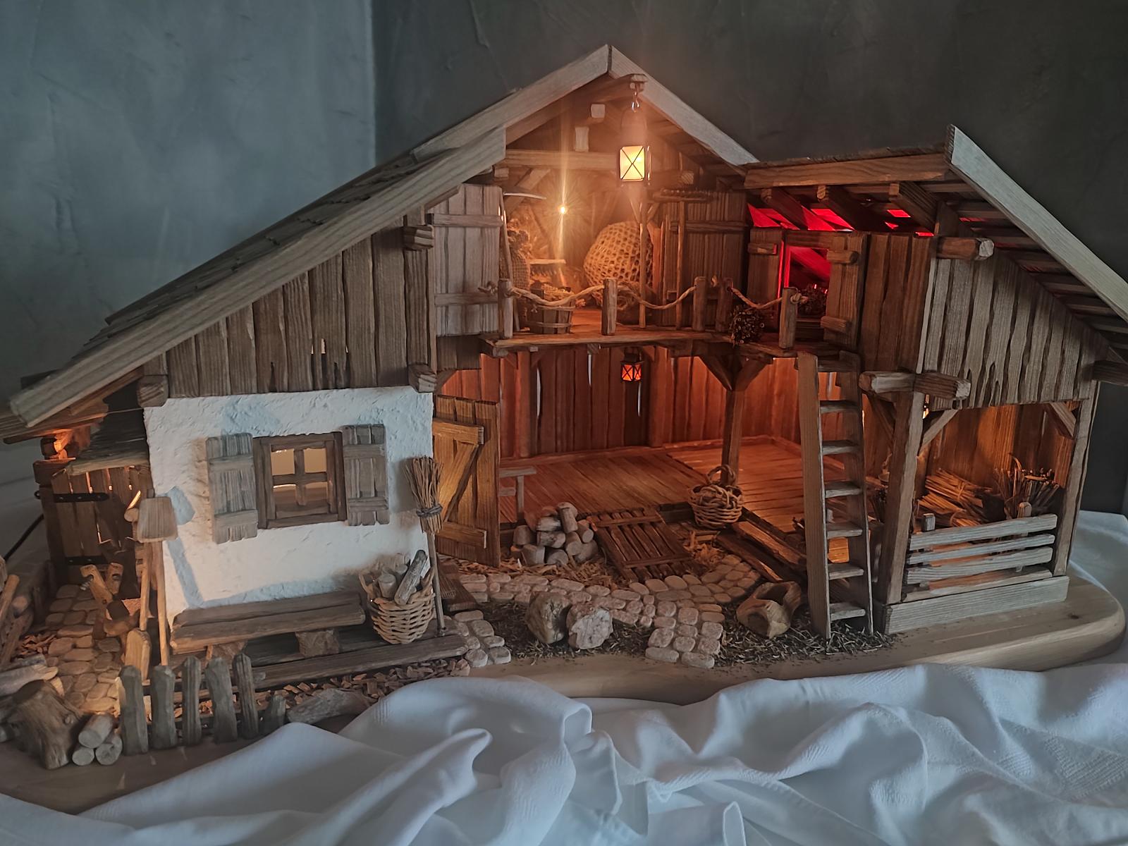 Auch aus Holz, aber aus vielen, vielen Einzelteilen sind die Alpenländischen Weihnachtskrippen von Uwe Gottschalk gearbeitet. Der Zöblitzer hat sich im Corona-Lockdown einen Ausgleich gesucht und mit der Herstellung des ersten Krippenhauses begonnen. Inzwischen sind es drei große Weihnachtskrippen geworden, von denen er zwei in der Galerie Am Alten Gaswerk zeigt. Inspiriert von seinem Vater, der ein ambitionierter Hobbyschnitzer war, lag die Arbeit mit Holz nahe. In vielen Stunden fertigte er dabei alle Einzelteile der Häuser mit viel Liebe zum Detail selbst an. In einer Fotodokumentation können die Besucher der Ausstellung den Entstehungsprozess nachvollziehen.