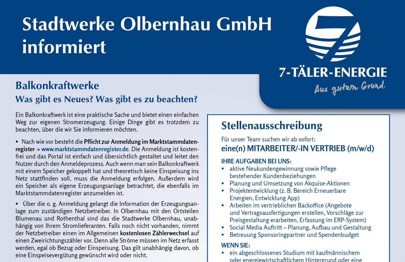 Veröffentlichungen der stadtwerke olbernhau gmbH im Olbernhauer Reiterlein – archiv